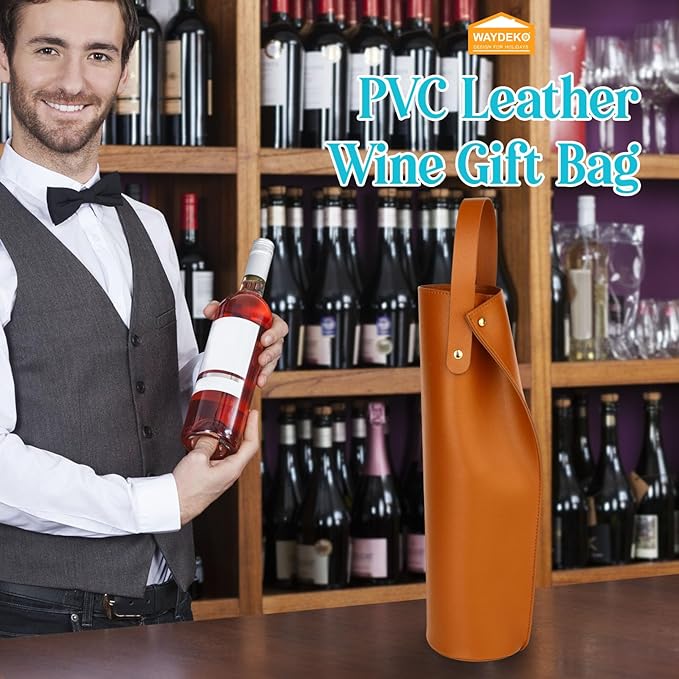 - Wine Gift Bag, Reusable PVC Leather Wine Tote Carrier, Double Layered Wine Gift bag carrier, Birthdays Bridal Showers Christmas or Other Holidays Gifts Party-Black/Navy Blue/Brown