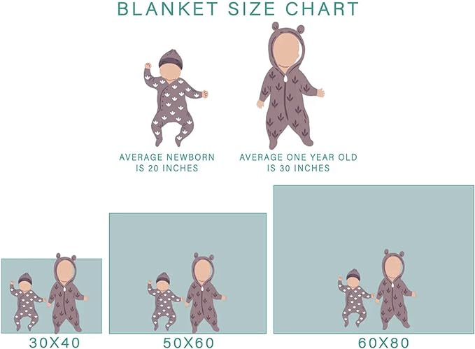 - Sizes: 30 x 40 perfect as bassinet carseat stroller cover, tummy time, nursing daycare sicurity blanket, burp cloth, crib receiving blanket for newborn baby infant toddler. 40 x 50 is good for baby boys girls and toddlers , 50 x 60 is perfect for teens and adult as a sofa throw. 60 x 80 is big enough for a queen size bed. Our unique-designed and functional throw blanket is perfect for baby room, kid’s room, bedroom, crib, stroller, couch or sofa decor and are sure to get a lot of compliments