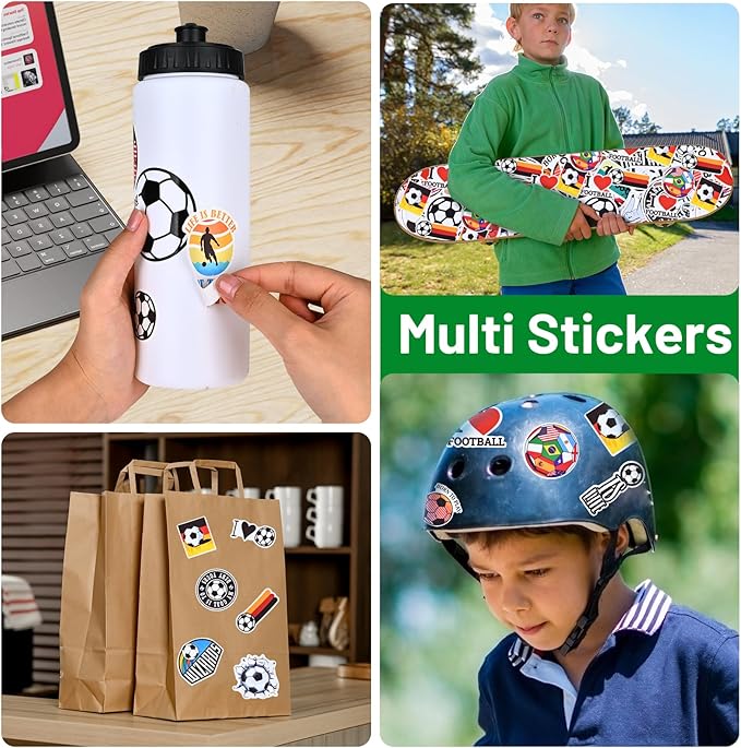 - 【Creativity】The soccer-themed stickers are vivid and fun, allowing kids to get creative and stick them on water bottles, skateboards, notebooks, and more