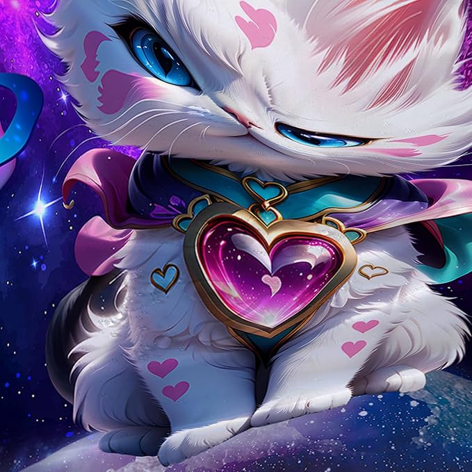 AILONEN Cartoon Cat Shower Curtain Set for Kids Boys Girls, Kawaii Love Kitten Shower Curtain for Bathroom,Galaxy Planet Washable Fabric Shower Curtain with Hooks,36" W*72" H