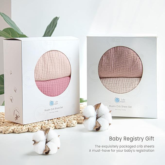 Lulu moon Muslin Crib Sheets - Fitted Crib Mattress Sheets for Boys and Girl - 28"x 52", 2 Pack