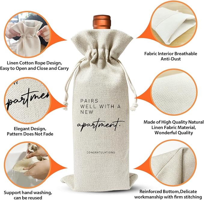 - OCCASIONS: This best gifts for housewarming wine bag can be a perfect gift for housewarmings, Thanksgiving, Christmas. Can be party decorations for women men, house accessories for home, house warming decoration party, decorations for house, home sweet home decor, realtor supplies, sold sign for new homeowners, burlap wine bags, wine suitcase, wine bottle cover, wine tasting party supplies