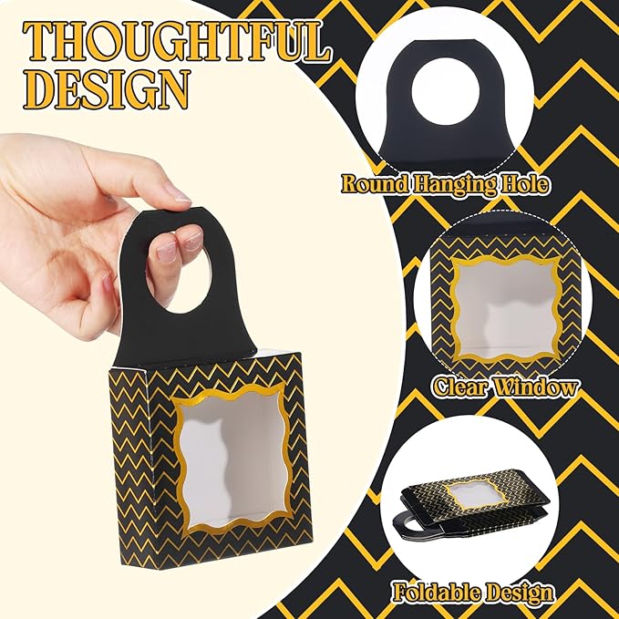 ISKYBOB 20PCS Wine Bottle Box with Window, Kraft Paper Wine Boxes for Birthday Gifts Hanging Wine Treat Box Mini Charcuterie Boxes Champagne Bottles Gift Boxes Candy Box for Party Favor (Black Gold)