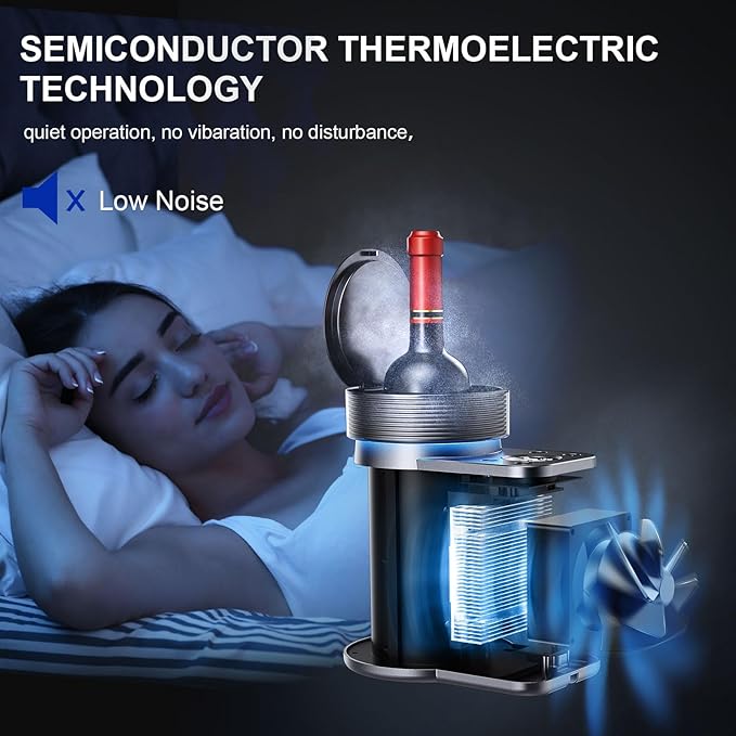 - Preserve wine flavor and aroma: An electric wine cooler ensures your wine is stored at the ideal temperature and humidity levels to preserve its flavor and aroma. No more wasted open bottles! Step one: Open the wine bottle cooler. Step 2: Set customizable temperature. Step 3: Place a suitable bottle (less than 3.74 inches in diameter) into the wine cooler. Step 4: The device begins to cool down. The LED will flash until the set temperature is reached. It will continue to glow after that and no more ice is needed.