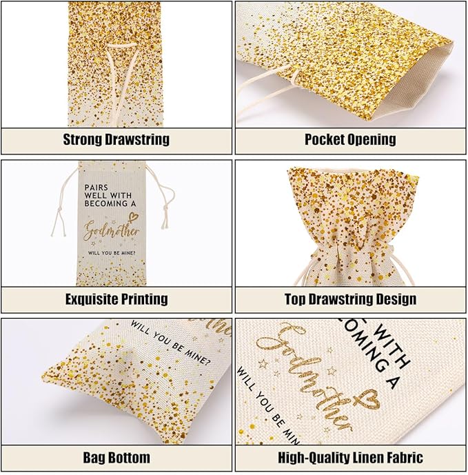 Godmother Gift Godmother Proposal Gift Wine Bag Godparents Gift Will You Be My Godmother for Baptism Women Lady Bestie Sister Friend Congratulations Wine Bags