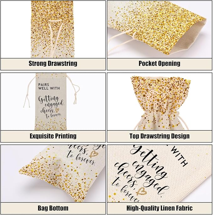 - Perfect Design And Size: Our wine bottle gift bags are 14.2 x 5.5 inches, can hold red wine bottles or champagne bottles, drawstring design makes it easy for you to put in and take out the wine bottles. Tighten the drawstring to protect your bottle from exposure. Can enhance the elegance and novelty of supplies and decorations for various party occasions. This is a unique gift for men, women, mom, colleague, grandma, friend, sister, bride, bridesmaid, father, groom.
