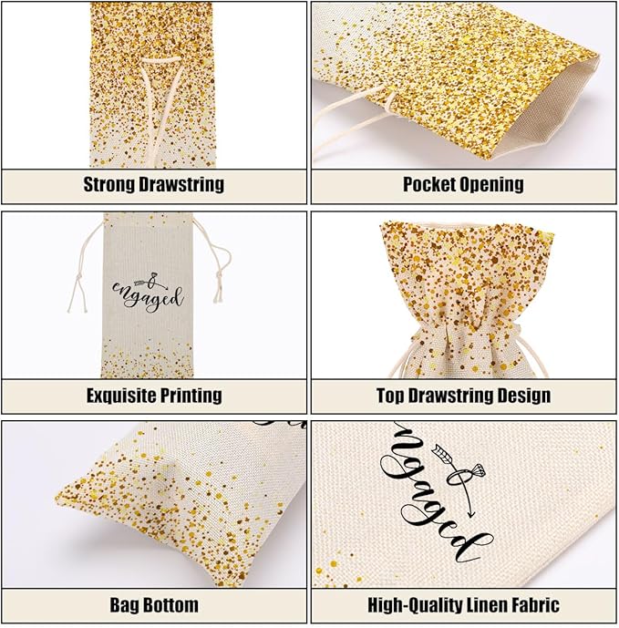 - Perfect Design And Size: Our wine bottle gift bags are 14.2 x 5.5 inches, can hold red wine bottles or champagne bottles, drawstring design makes it easy for you to put in and take out the wine bottles. Tighten the drawstring to protect your bottle from exposure. Can enhance the elegance and novelty of supplies and decorations for various party occasions. This is a unique gift for men, women, mom, colleague, grandma, friend, sister, bride, bridesmaid, father, groom.