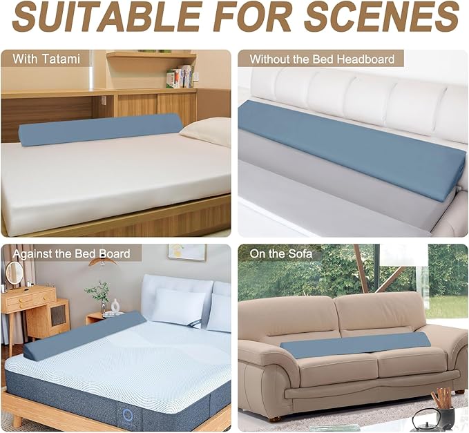 - Multi-fuction: Our bed headboard is good choice for beds with no headboard, hard wooden and Hollow iron art headboard. The wedge pillow gap filler can not only fill the gap of the mattress between headboard or wall keeps pillows from slipping , but also can be used with ordinary pillows to elevate the pillow height on the perfect angel for a great night's sleep.It can also be used in living room sofas to support back and waist for supporting.