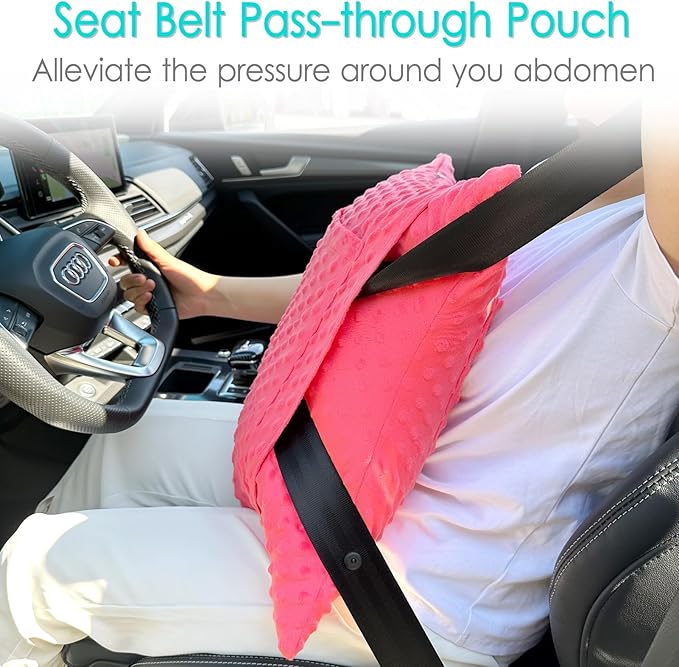 - Must Have for Post-op Recovery: Our c-section pillow can help relieve the pressure on your wound after surgery, whether you are standing, sitting or riding a car. Placing it under the seat belt during the ride helps to cushion pressure. If you need to sneeze, cough or laugh, pressing it onto the incision can alleviate the pain. Excellent shock absorption helps to minimize any discomfort. If your child or pet jumps onto you, you can also use an abdominal pillow to protect vulnerable areas.