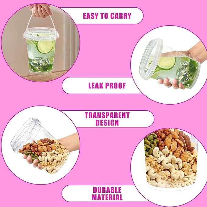 - Design: These 4x4.75inch ice cream buckets are sealed and can be stored well. The 4.8x5.75inch drink buckets feature holes on their lids, allowing straws to be inserted for convenient drinking.