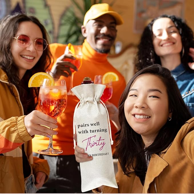 30th Birthday Gifts Burlap Wine Bags for Women Men Friend, Reusable Wine Gift Bags with Drawstrings for Congratulation Appreciation Birthday Party Decoration Home Storage - 04