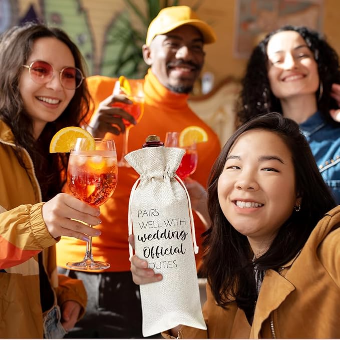 Wedding Officiant Gift Burlap Wine Bags Gift for Wedding Host Pastor Friend Woman Men, Reusable Wine Gift Bags with Drawstrings for Wedding Thanksgiving Christmas Appreciation Party Home Storage - 05