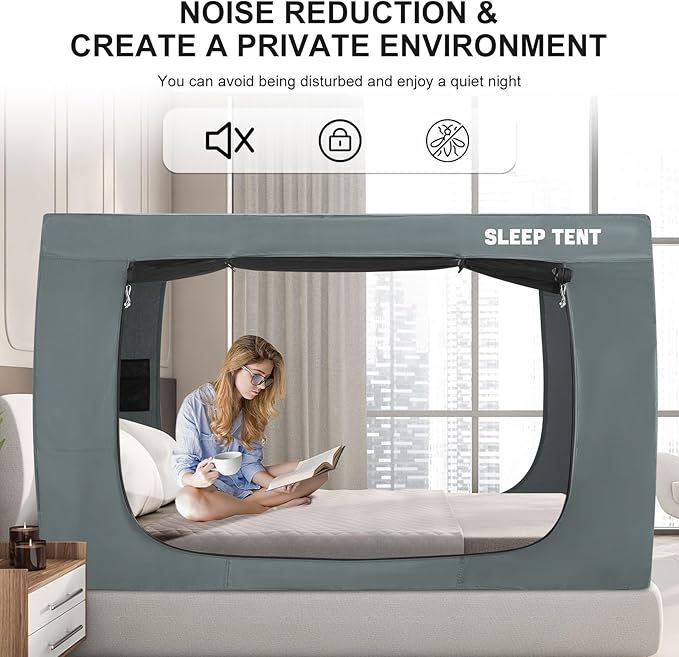 Bed Tent Full Bed Canopy Dream Tents for Indoor Portable Blackout Tents Privacy Space Warm Breathable Sleeping Tents for Kids and Adult(Light Gray,Mattress Not Included) Reducing Light