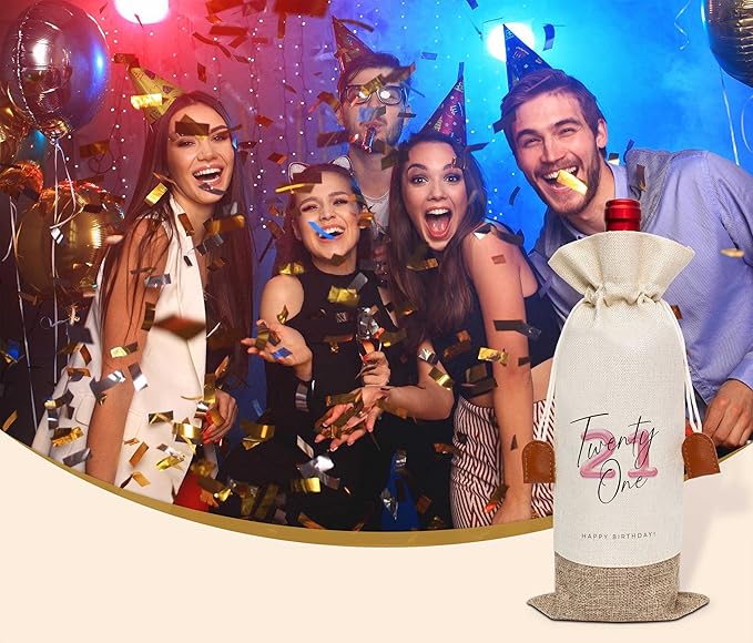 21th Birthday Wine Bag, Cotton Linen Wine Gift Bag With Drawstring, Wine Champagne Bottle Gift Bag, 21st Birthday Gifts Wine Bag for Woman Her Girl Friend Sister, 21th Birthday Party Favors-14