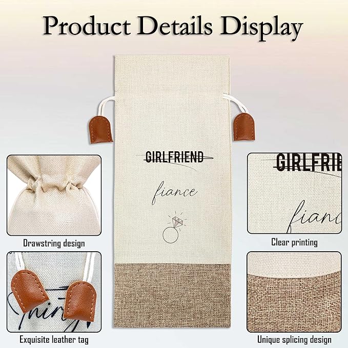 Wedding Wine Bag, Engagement Gifts for Girlfriend, Cotton Linen Wine Gift Bag With Drawstring, Wine Champagne Bottle Gift Bag, Wedding Gift for Women Besties Friends, Bachelorette Party Favor-22