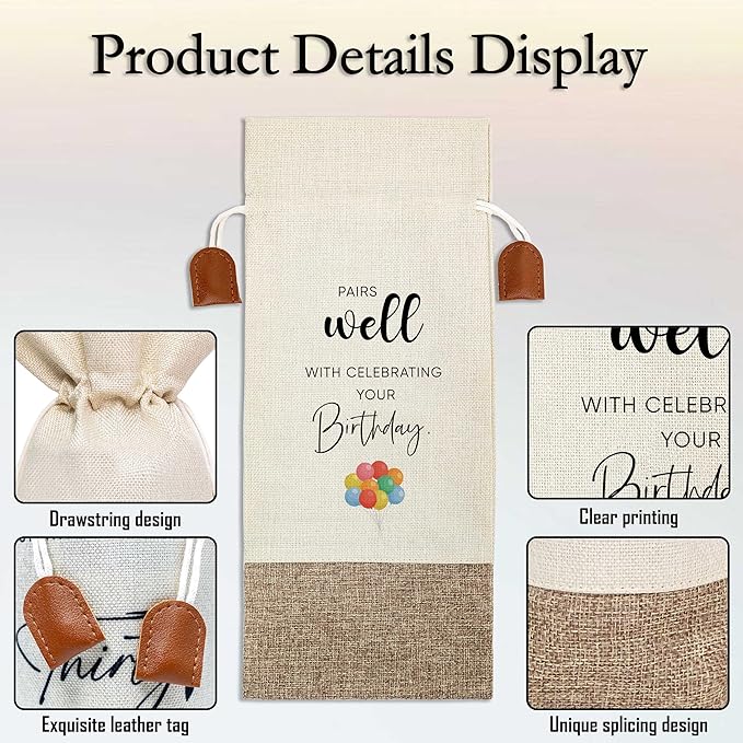 Funny Birthday Wine Bag, Cotton Linen Wine Gift Bag With Drawstring, Wine Champagne Bottle Gift Bag, Birthday Gifts Ideas for Men Woman Her Girl Friend Sister, Birthday Party Favors-35