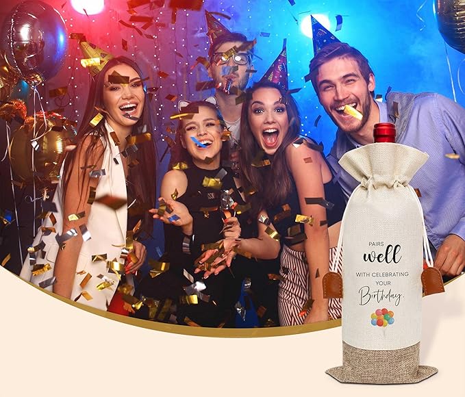 Funny Birthday Wine Bag, Cotton Linen Wine Gift Bag With Drawstring, Wine Champagne Bottle Gift Bag, Birthday Gifts Ideas for Men Woman Her Girl Friend Sister, Birthday Party Favors-35