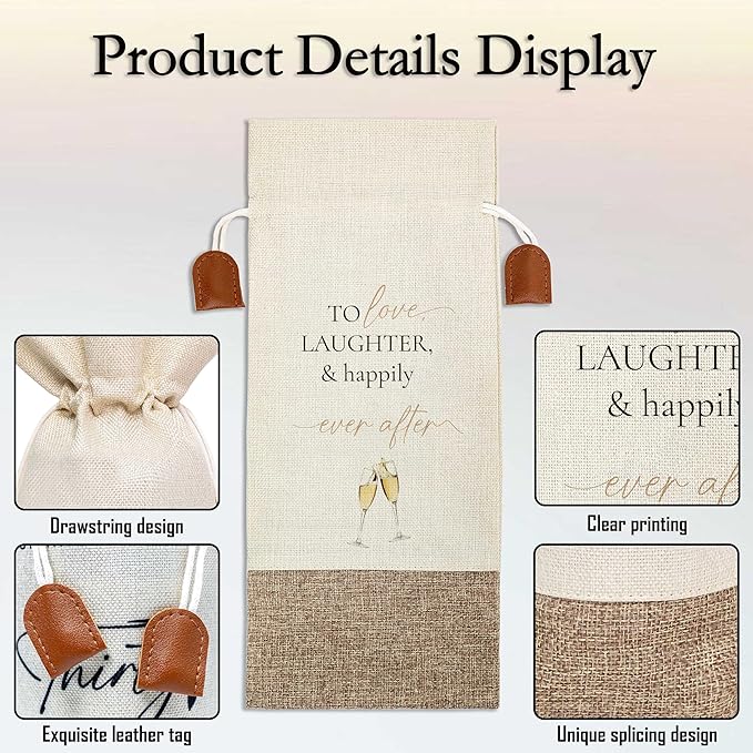 Wedding Wine Bag, Engagement Gifts for Couples, Cotton Linen Wine Gift Bag With Drawstring, Mr and Mrs Marriage Wedding Gifts, Wedding Gift for Women Besties Friends, Bachelorette Party Favor-23