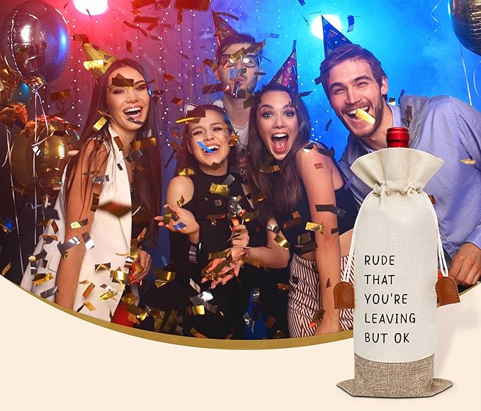 Coworker Leaving Gifts Wine Bag, New Job Wine Champagne Bag, Cotton Linen Wine Gift Bag With Drawstring, Retirement, New Beginning Gifts For Leaving Coworker, Going Away Work Friend-11