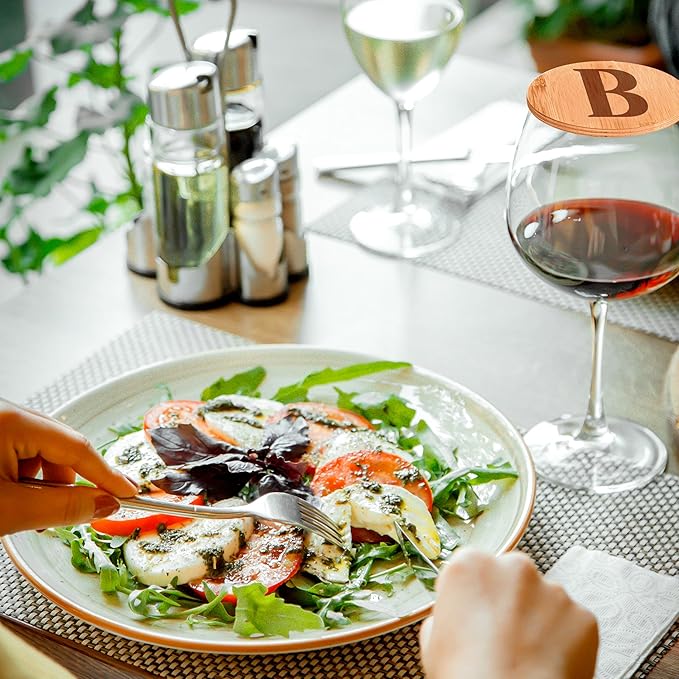 Personalized Wine Glass Charcuterie Topper - Custom Laser Engraved Initial Bamboo Wine Glass Topper Stopper Coasters Plate ID Identification Wine Glass Charcuterie Board Topper (Letter B)