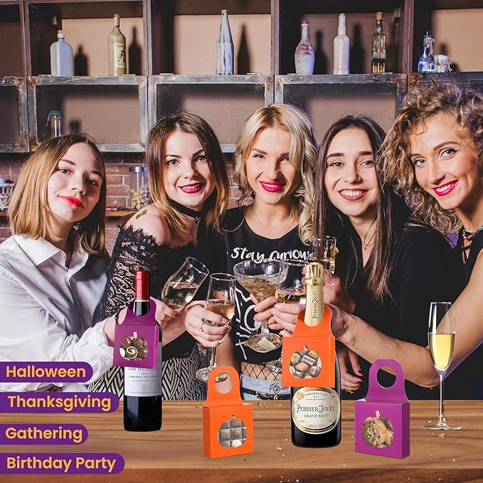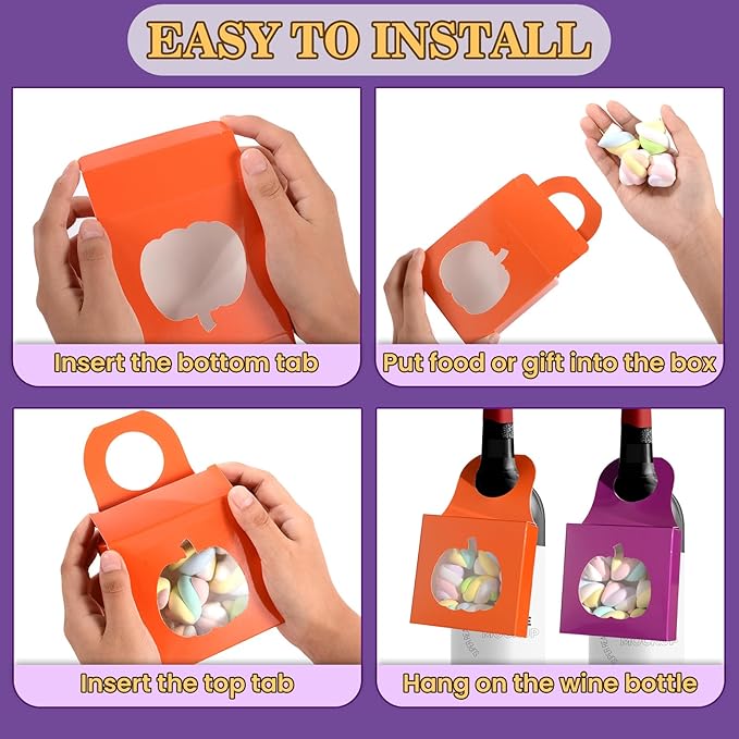 - Pumpkin Window - Halloween wine gift box has clear window, which allows you to see the all goodies inside, such as macaron, cookies, candy, treats, chocolate, and small fruits. Paper gift boxes designed with pumpkin pattern window, add fun to Halloween gifts.