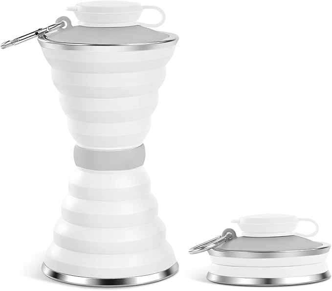 jessie Collapsible Water Bottles 17 oz Silicone Foldable Water Bottles Portable Travel Water Bottle with Buckle for Camping Hiking Sports Outdoor Gym Summer (White)