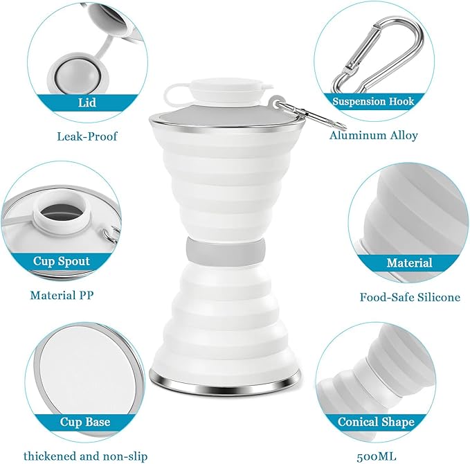 - πΉπππππππ π΄πππππππ: the foldable water bottle is mainly made of quality silicone material, with metal buckle, reusable and lightweight, can be applied for a long time; The buckle can be hung on your backpack, bringing a lot of convenience for you.