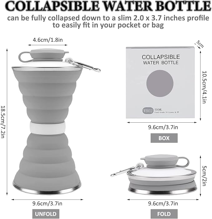 - πͺππππππ πππ π·πππππππ: the portable water bottle is foldable, measuring about 3.8 x 1.8 inches/ 9.6 x 4.6 cm after folding, and about 3.8 x 7.3 inches/ 9.6 x 18.5 cm after unfolding, easy to carry around for outdoor activities.
