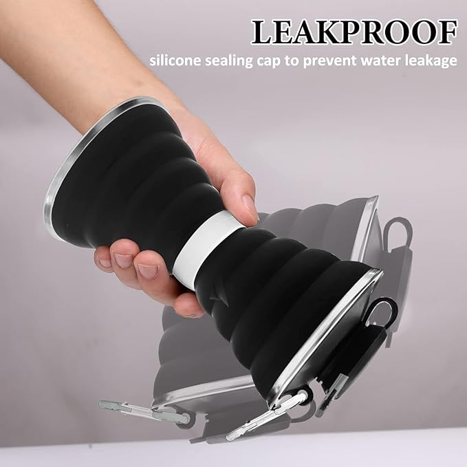 - πΉπππππππ π΄πππππππ: the foldable water bottle is mainly made of quality silicone material, with metal buckle, reusable and lightweight, can be applied for a long time; The buckle can be hung on your backpack, bringing a lot of convenience for you.