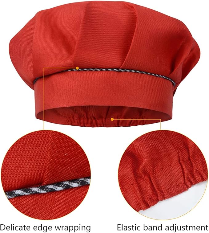 - Fits Little Helpers Of All Sizes : S (3-6 years):22 inch x 18 inch , M(6-12 years):24.4 inch x 18 inch ,L(12-15 years):29.5 inch x 20 inch.chef hat has a large mushroom design to give it the professional look,with elastic band in back, comfortable to wear