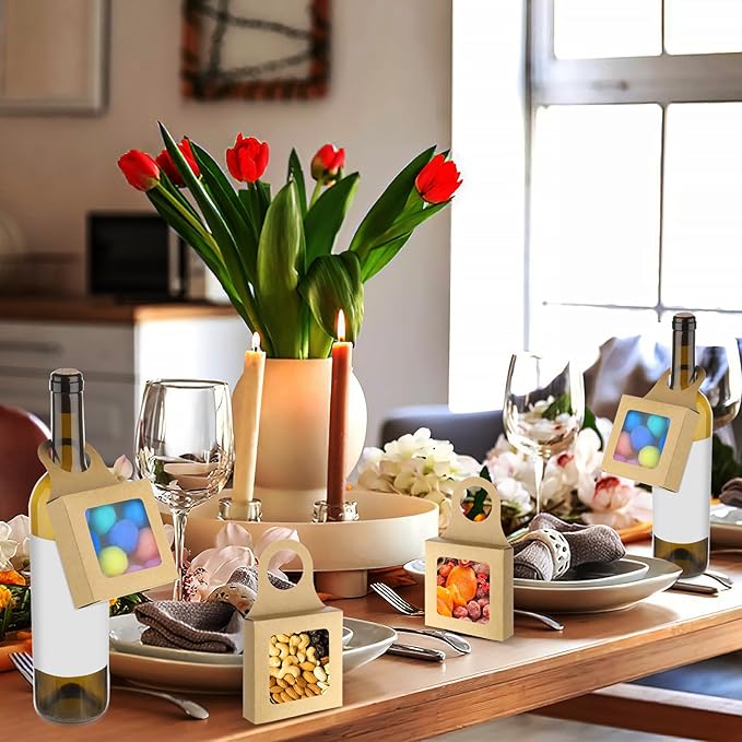 - 【Box with Window Handles】Thick kraft paper material makes wine bottle box with window easily to hang on various size boxed wine and champagne bottles. Paper wine bottle box express your love and wishes, practical wine bags with window are good for crafting