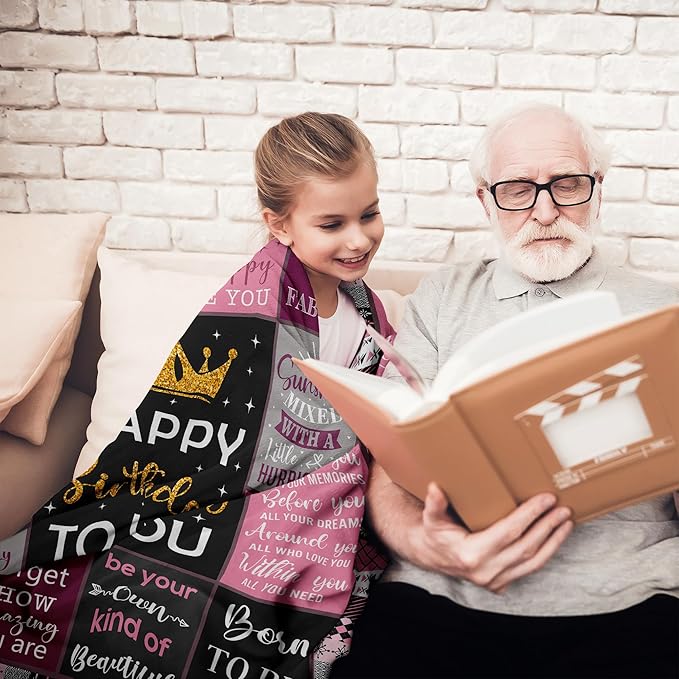 Birthday Gifts for Girls/Her, Happy Birthday Decorations Blanket 40"X50", Birthday Gifts for Teen Girls, Birthday Gifts for Daughter/Granddaughter/Friend/Sisters, Girls Birthday Gift Ideas