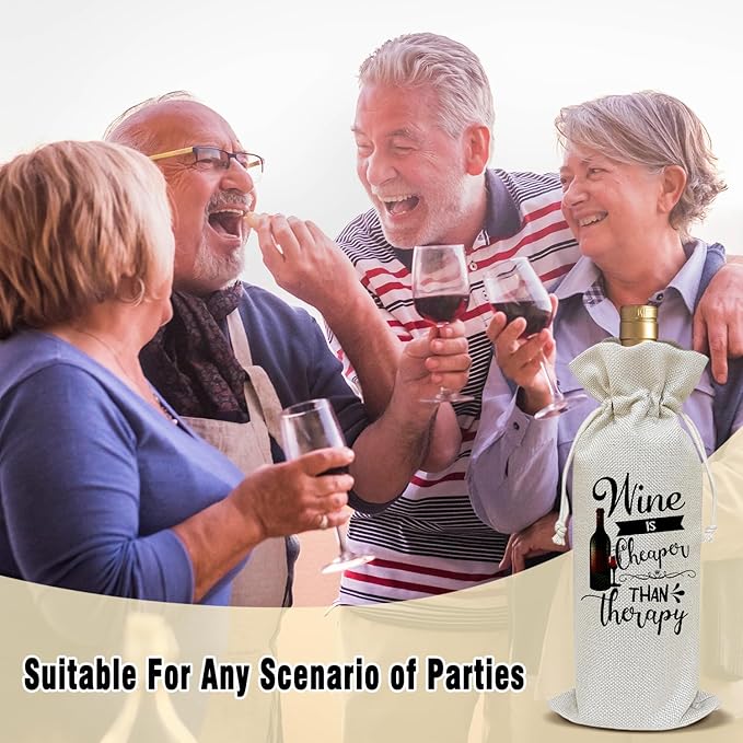 Wine is Cheaper Than Therapy - Wine Canvas Bag, Wine Lover Gift Funny Wine Gift Bag, Birthday Gifts for Women Men, Wine Bags for Wine Bottles, Wine Gifts With Drawstring Holiday Party Decoration -WB22