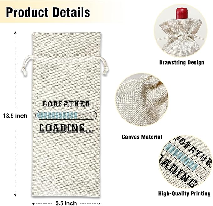 Wine Canvas Bag, Godfather Gifts Wine Gift Bag, Godfather Proposal Gifts for Men Brother Uncle Wine Bags for Wine Bottles, Wine Champagne Gifts With Drawstring Baptism Party Decoration -WB06