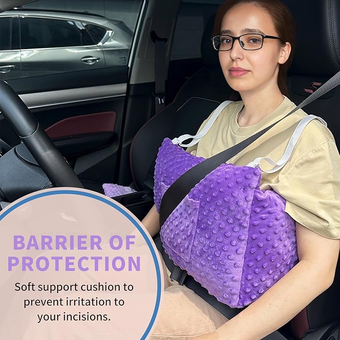 - OFFERS ULTIMATE CARE AND COMFORT – Our chest pillow can be your living or driving companion before you fully recover after surgery. It keeps your arm’s weight from affecting your incisions and gives you underarm relief and minimizes the impact your kids,pets or seatbelt has and keeps the sensitive area well protected.