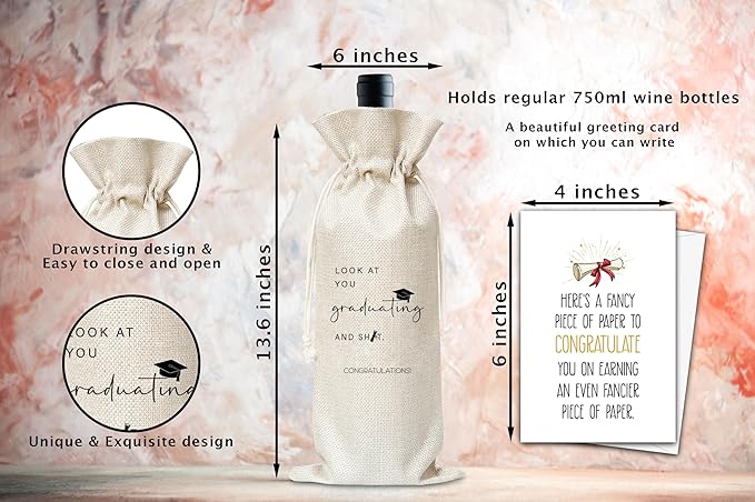Graduation Wine Gifts Bag, Congratulations Graduation Reusable Wine Bag, Champagne Gifts Bag, Congrats Gifts For College Masters Doctorate Graduation Party, Burlap Drawstring Wine Bag With Card-18