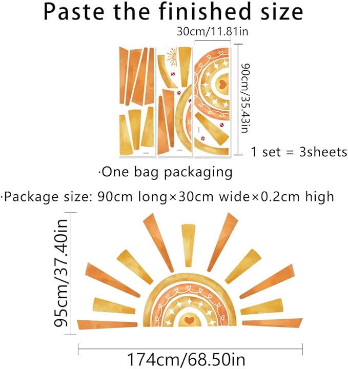 - Nursery Decor: Vibrant sun wall sticker perfect for decorating baby nurseries, kids' rooms, or playrooms.