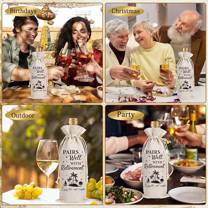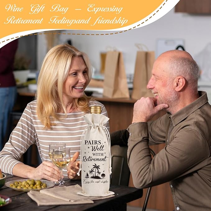 - 【Retirement Gift Bag for Men and Women】This wine bag has the words "Pairs Well With Retirement" and "Enjoy the new chapter" printed on both sides. For women starting a new life, bosses who are about to retire, best friends, colleagues, nurses, doctors, teachers, etc., this is the best retirement gift to express your blessings.